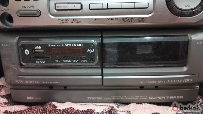 Муз.центр LG,в рабочем состоянии.Фм-радио,Аукс работают без проблем...Дисководу и кассетнику надо приложить руки,глючат,застоялись от времени.Колонки и звук в них выдаётся чистый без проблем.