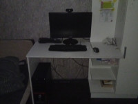 В хорошем рабочем состоянии, ПК обычный офисный, стол металлический каркас и стекло. Продаю из-за нужды денег, 30тыс!