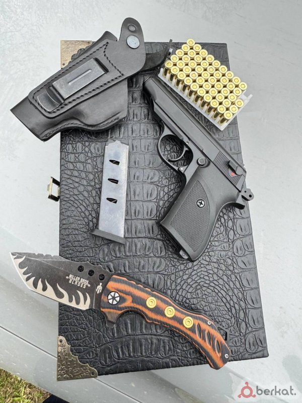 Сигнальный Светошумовой Никаких увечий не наносит Для покупки разрешение не нужно Калибр 9мм ✅Шашлычный набор, Гран павер 2х режимный 50 патрон + кабура Выкидной нож