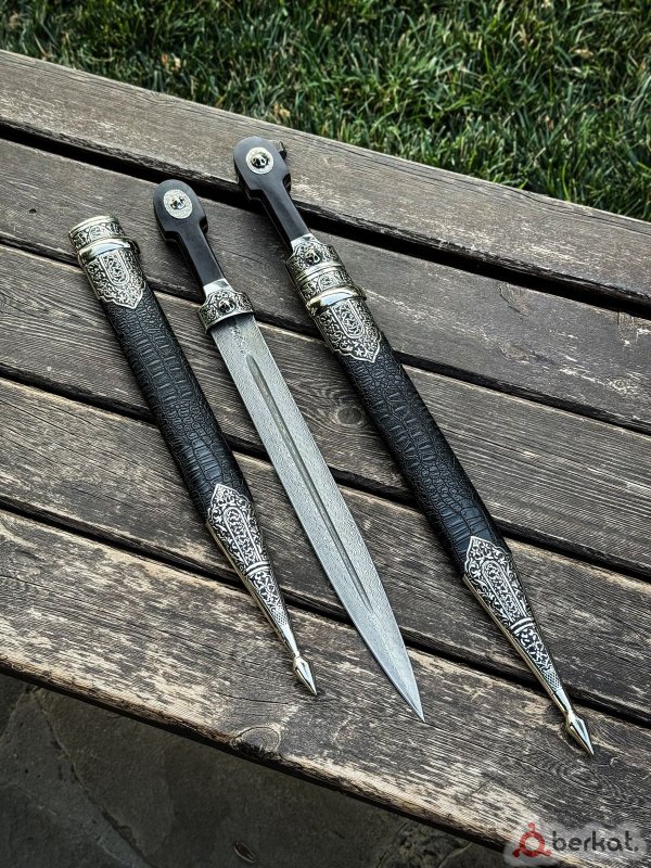 ⚔️Боевой Кавказский кинжал * Сталь - авторский дамаск с клеймом мастера * Корпус дерево обтянутое кожей с вставками из мельхиор * Рукоять из дерева черный граб * Цельнометаллическая конструкция ?общая длина 66 см ?длина клинка 41,8 см ?длина рукояти 16 см ?ширина клинка 4,2 см ?толщина обуха 5.5 мм