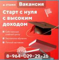 Теперь мы в федеральной компании "Этажи" на протяжении целых 6 месяцев не только обучаем и адаптируем абсолютно бесплатно, но и оказываем финансовую поддержку на протяжении всего периода обучения! От вас ждём только желание и стремление зарабатывать! Быстрее записывайся на собеседование по номеру тел. : +7 (964) 029 29 26