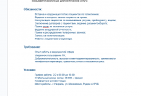 В медицинский центр широкого профиля требуется администратор с опытом работы в этой должности. Клиника работает с лабораторией, врачами оказывается различные диагностические услуги. Обязанности: Встреча и координация потока пациентов по поликлинике; Ведение и контроль записи пациента на прием; Консультация пациентов по оказываемым услугам, прейскуранту, акциям; Заключение договоров с пациентами, ведение документооборота; Прием оплат за оказанные услуги; Ведение ежедневной отчетности; Прием и распределение телефонных звонков; Запись на госпитализацию; Работа с пациентами стационара. Требования: Опыт работы в медицинской сфере Уверенное пользование ПК; Доброжелательность, высокая